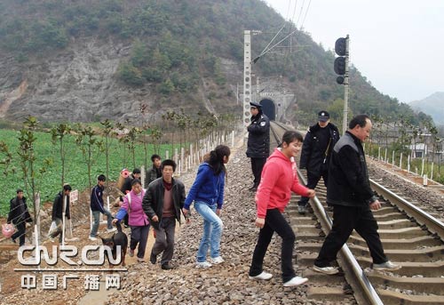 引導(dǎo)外出掃墓祭祀親人的村民安全通過鐵路線