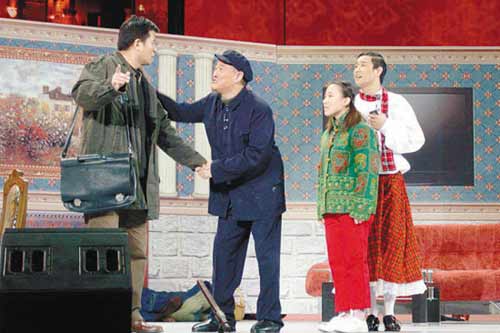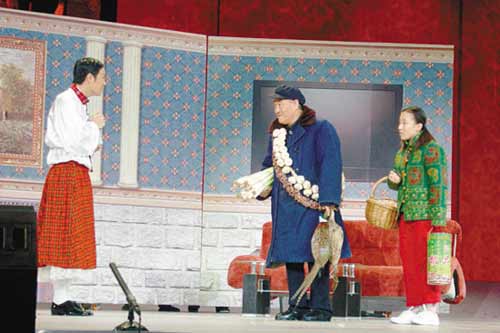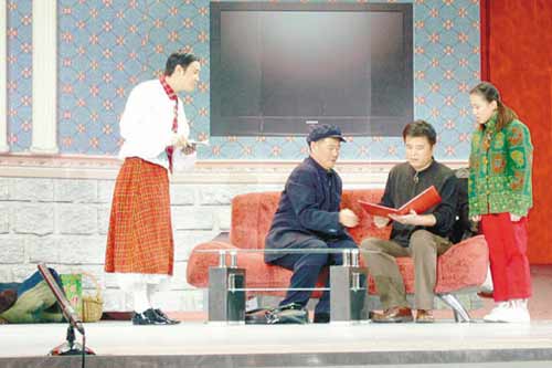當(dāng)然,最值得期待的還是每年春晚年夜飯中的那道“大菜”——趙本山的小品。跟之前媒體報道的陣容一模一樣,趙本山、畢福劍倆大腕加上兩位新人小沈陽和毛毛。這個叫做《不差錢》的小品講的是,央視名嘴老畢到鐵嶺去挑選《星光大道》的選手,文化館長趙鐵柱想推薦小沈陽,而他爹(趙本山)想讓自己的孫女(毛毛)去露臉,于是在一個咖啡館里,在老趙和老畢一唱一和的攛掇下,小沈陽和毛毛現(xiàn)場秀絕技。毛毛唱的《青藏高原》聽起來比李娜的還高還輕松,高音還富余,而小沈陽模仿的劉歡、阿寶的歌也絲毫不在原唱之下。跟其他節(jié)目相比,這個節(jié)目現(xiàn)場笑果顯然要好得多,盡管其中的包袱不如以往的《賣拐》等小品。相比之下,老趙和老畢就如同兩片大綠葉,就看兩位新人;顚毩。另一個新亮相的由黃宏、鞏漢林、黃小娟、魏積安的小品《黃豆黃》現(xiàn)場笑果并不是很強烈。