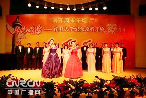 為隆重紀(jì)念改革開放30周年,南開大學(xué)舉辦了“紀(jì)念改革開放30周年大型系列主題活動(dòng)”,包括理論研討會(huì)、理論征文活動(dòng)、理論學(xué)習(xí)報(bào)告會(huì)、紅歌會(huì)、圖片展、經(jīng)典國(guó)產(chǎn)影片特獻(xiàn)季等內(nèi)容,回顧凱歌行進(jìn)的歷史,放眼光彩輝煌的未來,以豐富多彩的形式充分展現(xiàn)南開人為改革開放拼搏、為偉大祖國(guó)奉獻(xiàn)的良好精神風(fēng)貌。
