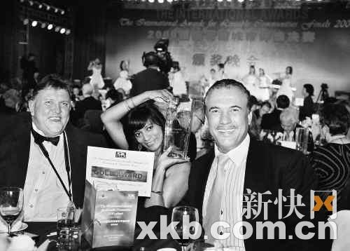 2008國際花園城市評選頒獎晚會上,外賓獲獎后興奮地將獎杯舉在肩上。
