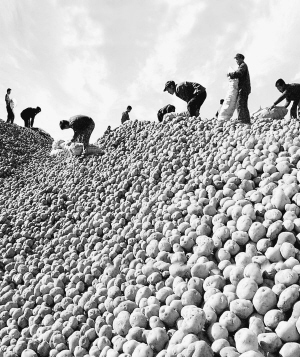 豐收時(shí)節(jié),定西農(nóng)民收獲的馬鈴薯堆成了“金山”。