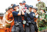 2008年,深圳特警在什邡紅白鎮(zhèn)救助負傷的群眾。