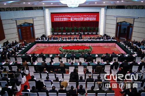 中廣網(wǎng)烏魯木齊12月25日消息(記者胡志堅(jiān) 董虹)12月24日,新疆維吾爾自治區(qū)黨委在新疆人民會(huì)堂隆重舉行紀(jì)念黨的十一屆三中全會(huì)召開30周年座談會(huì)。中共中央政治局委員、新疆維吾爾自治區(qū)黨委書記王樂泉發(fā)表重要講話,回顧新疆改革開放和現(xiàn)代化建設(shè)取得的巨大成就,展望新疆改革發(fā)展的美好未來,在新的起點(diǎn)上繼續(xù)推進(jìn)新疆改革開放向更深層次發(fā)展。