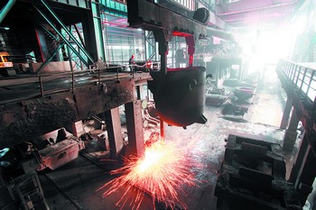 (冷鋼車間一角。這個曾經瀕臨倒閉的企業(yè),正因為解放思想才獲得拯救,連續(xù)三年進入“中國企業(yè)500強”。周小華攝)