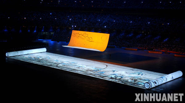 8月8日,第29屆夏季奧林匹克運(yùn)動會在國家體育場——“鳥巢”隆重開幕。這是開幕式上的大型文藝表演。 新華社記者程敏攝