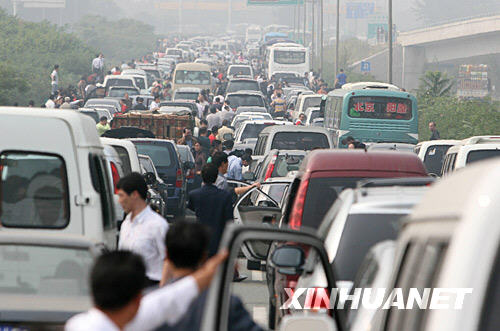 10月1日中午12點之后,受出游車輛過多影響,北京八達(dá)嶺高速公路昌平西關(guān)到八達(dá)嶺水關(guān)路段交通堵塞嚴(yán)重,駕乘人員紛紛走出車外等候通車。 新華社發(fā)