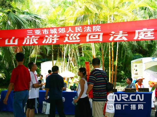 黃金周期間,三亞城郊人民法院在南山舉行巡回法庭,為游客提供旅游法律咨詢