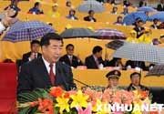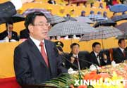 中央代表團(tuán)副團(tuán)長回良玉宣讀賀電
