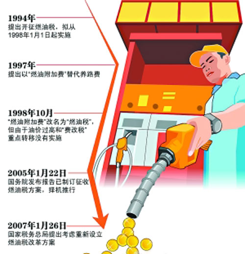 早在2001年1月,時(shí)任國(guó)家稅務(wù)總局局長(zhǎng)的金人慶就透露,燃油稅出臺(tái)工作已就緒,將擇機(jī)出臺(tái)。到了2005年1月,前國(guó)家稅務(wù)總局局長(zhǎng)謝旭人又透露,燃油稅改革方案經(jīng)過研究已有初步意見。再到2006年舉行的全國(guó)財(cái)政工作會(huì)議上,當(dāng)時(shí)已調(diào)任財(cái)政部部長(zhǎng)的金人慶又一次公開表示,中國(guó)將在2007年適當(dāng)時(shí)機(jī)公布燃油稅改革計(jì)劃并加以實(shí)施。但轉(zhuǎn)眼兩年過去,改革依舊“待字閨中”。