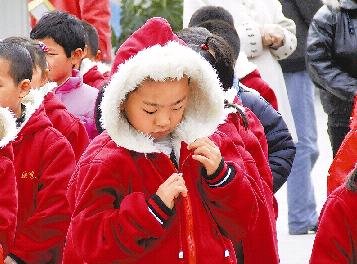 一江之隔的井田小學(xué)已安置好4臺太陽能熱水器,保證學(xué)生能用熱水袋暖手。同時,該校正著手用布條和棉紗,填補(bǔ)板房屋頂和四周的縫隙,再用縫制的棉布簾來抵御寒風(fēng)。