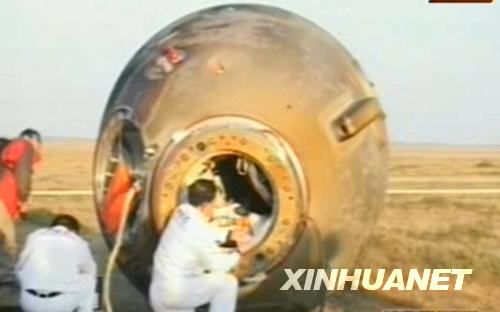 9月28日,神七返回艙艙門打開。新華網(wǎng)記者 汪東 攝