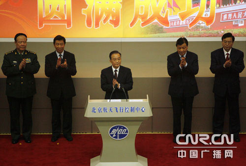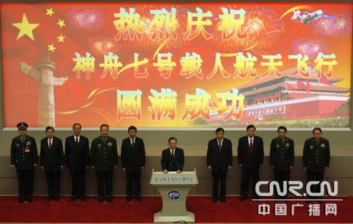 載人航天工程總指揮、中央軍委委員、解放軍總裝備部部長(zhǎng)常萬(wàn)全部長(zhǎng)宣布神舟七號(hào)載人航天飛行任務(wù)結(jié)果。(中廣網(wǎng)記者南光 曹囡囡攝)