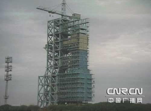 臍帶發(fā)射塔進(jìn)行發(fā)射前準(zhǔn)備(記者郎峰蔚 攝)