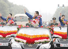 航天員翟志剛、劉伯明、景海鵬凱旋回京