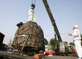 神舟七號載人飛船返回艙抵京 外觀良好