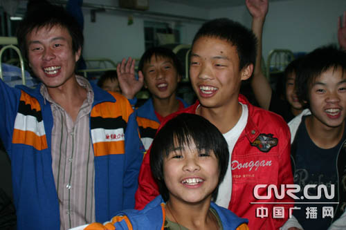 當(dāng)一些孩子聽說記者當(dāng)中有來自四川的時,嘩啦一下子把兩位四川來的記者圍了起來,滿口四川方言地問這問那,嘻嘻哈哈,快樂地好像看到親人一樣。“阿姨,我們可喜歡聽到你說四川話了!好久沒聽到了!”一群小女孩兒圍著一位四川女記者說。記者問她們“你們同學(xué)之間不都是說四川話嗎?這還說不夠?”她們?nèi)碌溃骸安灰粯樱⒁淌谴笕寺!”?dāng)記者們將要離去時,孩子們還緊緊跟著送到門口。