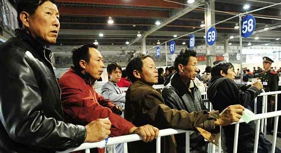 錦漢售票點(diǎn)外排隊(duì)購(gòu)票的人們