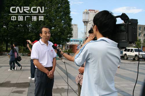 “2008中國海洋紀(jì)事”黃渤海區(qū)報(bào)道組組長鄭凱接受丹東市媒體的采訪—中廣網(wǎng)記者吳菁攝