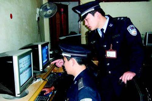 民警在檢查網(wǎng)吧管理系統(tǒng)