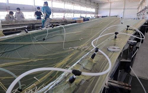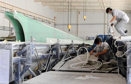 8月6日,國電聯(lián)合動力技術(shù)赤峰有限公司工人在松山區(qū)工業(yè)機械加工園車間制作模具。西部大開發(fā)十年來,內(nèi)蒙古風電產(chǎn)業(yè)發(fā)展迅猛,致力打造“風電三峽”,建設(shè)輻射首都北京的綠色能源大區(qū)和能源戰(zhàn)略儲備基地。截至2010年初,內(nèi)蒙古自治區(qū)風力發(fā)電裝機容量突破500萬千瓦,到“十二五”末,風電裝機容量將達到2000萬千瓦。新華社記者張領(lǐng)攝