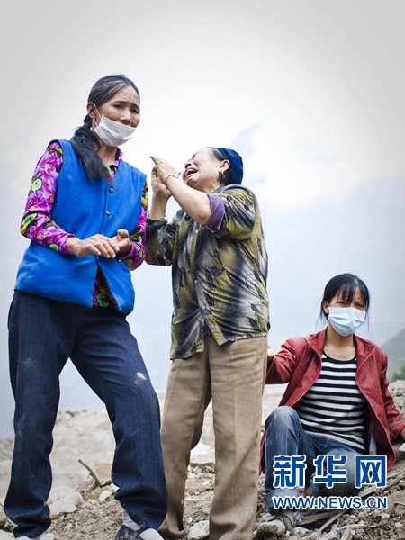 8月18日,64歲的奶奶楊朝梅(中)在挖掘現(xiàn)場泣不成聲。新華社記者 劉彬 攝
