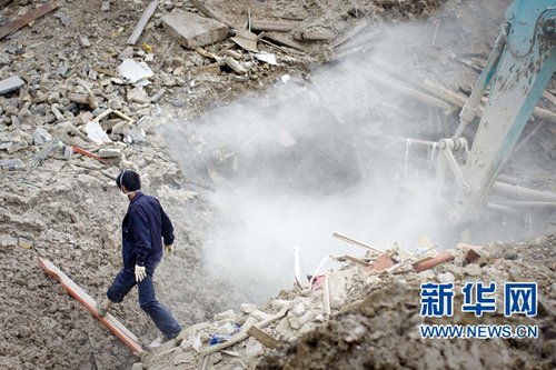 8月18日,老三張紅紅不待挖土機(jī)結(jié)束作業(yè)就下到廢墟里查看情況。新華社記者 劉彬 攝