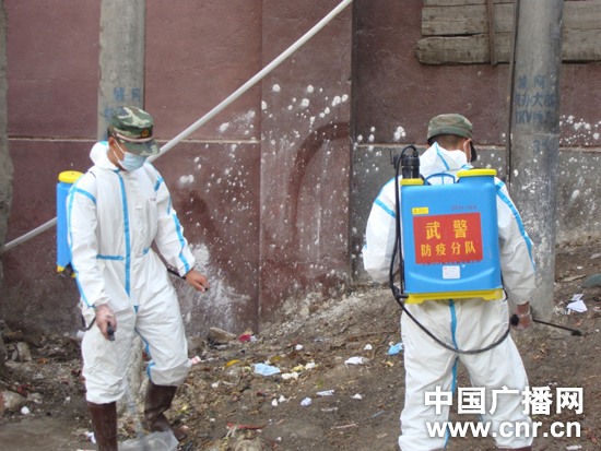 圖為武警甘肅總隊(duì)醫(yī)療隊(duì)每天消殺防疫