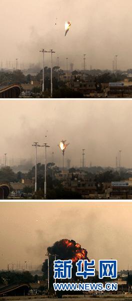 這組3月19日拍攝的拼版照片顯示,一架利比亞武裝部隊(duì)的轟炸機(jī)在利比亞反政府武裝大本營(yíng)班加西城上空被擊中后墜毀。 新華社/法新