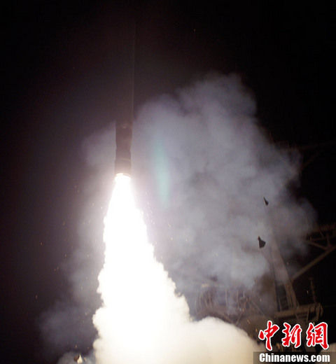 這張美國海軍新聞部門提供的照片顯示,3月19日,美軍驅(qū)逐艦向利比亞發(fā)射“戰(zhàn)斧”巡航導彈。美國國防部聯(lián)合參謀部主任威廉·格特尼19日在五角大樓新聞發(fā)布會上透露,在第一波襲擊中,美國和英國的軍艦和潛艇向利比亞海岸的20多個防空目標發(fā)射了112枚戰(zhàn)斧式巡航導彈。