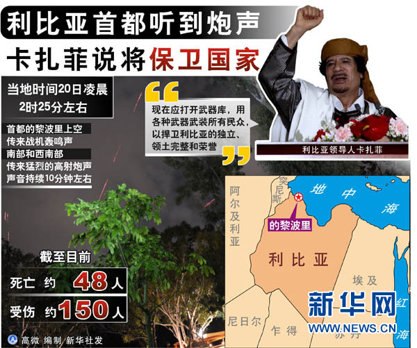 圖表:利比亞首都聽到炮聲卡扎菲說(shuō)將保衛(wèi)國(guó)家