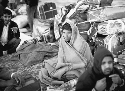 3月22日,從利比亞逃出的外國工人在利比亞與突尼斯邊境附近的難民營里艱難度日。 人民圖片