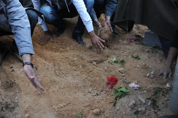 3月24日,在利比亞首都的黎波里,人們?yōu)槟寡ㄅ嗤痢?利比亞官方當(dāng)日宣布,近100名平民在西方聯(lián)軍空襲中喪生。 新華社記者楊光攝