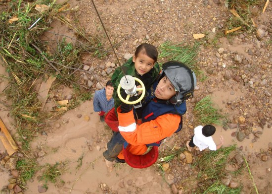組圖:直升機(jī)營救廣西13名被洪水圍困群眾