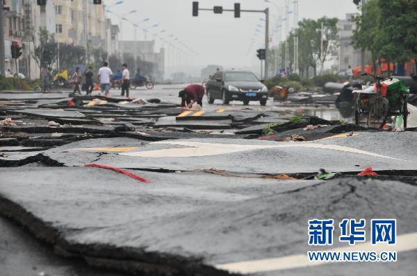 余江(江西),2010年6月21日 洪水讓余江縣城道路受損嚴(yán)重 6月21日早上,江西余江縣城洪水退去,城區(qū)路面被洪水泡過后變成碎片。 6月19至20日,江西省余江縣遭遇罕見特大暴雨襲擊,強(qiáng)降雨導(dǎo)致縣城內(nèi)白塔河河水漫過堤岸,余江縣城與外界連通的4條道路全部被洪水淹沒。洪水在20日夜間退去,但供水供電仍未恢復(fù)! ⌒氯A社記者 周密攝