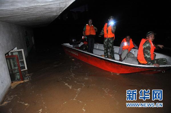 6月22日,南昌市消防支隊(duì)官兵在江西撫州市羅針鎮(zhèn)胡溪萬(wàn)家村尋找被洪水圍困的村民。 6月21日傍晚,江西省撫州市唱?jiǎng)P堤發(fā)生決口,威脅下游臨川區(qū)湖南、羅湖、唱?jiǎng)P、羅針和云山等5個(gè)鄉(xiāng)鎮(zhèn)14.5萬(wàn)人口、京福高速公路、316國(guó)道以及12萬(wàn)畝糧田的安全。江西省委、省政府主要領(lǐng)導(dǎo)獲悉后,立即對(duì)搶險(xiǎn)工作作出部署,要求迅速轉(zhuǎn)移群眾,不惜一切代價(jià),保護(hù)人民生命財(cái)產(chǎn)安全。目前,撫州市、臨川區(qū)已經(jīng)在組織人員轉(zhuǎn)移。駐贛部隊(duì)和武警、消防官兵正在緊急救援。新華社記者周科 攝