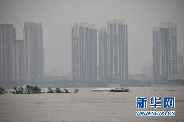 6月22日,贛江江心洲被水淹的房子只露出房頂。當(dāng)日,記者從江西省防總獲悉,按目前雨水情分析,預(yù)計(jì)贛江洪峰將于6月23日凌晨時(shí)分經(jīng)過南昌站,洪峰水位23.80米,超警戒0.80米,流量每秒20000立方米,南昌將接受考驗(yàn)。新華社記者 陳春園 攝