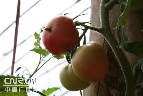 侯溝門村村官張小萃在蔬菜棚里給我們講解