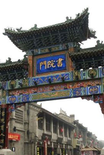 懂行的人到書院門是看“書”的。這“書”涵蓋書、畫及相關(guān)的一切。這里賣字畫的店鋪多,里面不僅有許多民間書畫愛好者的作品,也有不少名家名作;但是也有贗品。略往書院門的街深處走,賣字畫的店鋪便越來越多。還有許多臨街?jǐn)[設(shè)的攤位,其實(shí)就是張書桌,上備文房四寶以及展示有主人寫畫好的作品。主人就在此或?qū)懽,或作畫,也出售作品,但是更享受這種陶冶情操和相互切磋技藝的生活。其中不乏功力深厚、作品絕佳的高人。每年都會(huì)大批書畫名家會(huì)聚西安,在這里舉辦各種展覽陳列數(shù)十次。