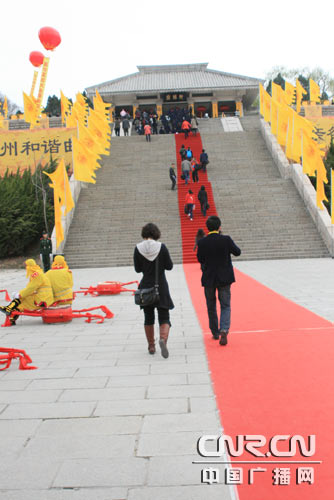 中廣網(wǎng)黃陵4月5日消息 庚寅(2010)年清明公祭軒轅黃帝活動于9點50在陜西省黃陵縣橋山軒轅廟開始。國家領(lǐng)導(dǎo)人、國家有關(guān)部委、兄弟省市領(lǐng)導(dǎo),海外僑胞、港澳臺同胞及延安市、黃陵縣守靈兒女代表共10000余人參加祭祖典禮。