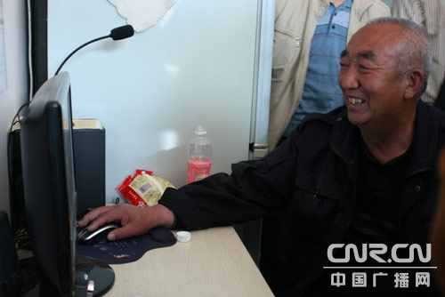 走出蔬菜棚,新村官把我們領(lǐng)進(jìn)了一戶老鄉(xiāng)家里面。一進(jìn)門客廳的桌子上里擺著胡總書記來村視察的大照片,主人高興地給我們描述書記鼓勵大家奮斗、日子越過越紅火的情景,臉上泛著紅光。這家主人就是侯溝門村原村支書樊明亮,生于1955年的老樊每天除了精心照料他的大棚外,還有一項必修課——上網(wǎng)實時查詢蔬菜價格?粗覀兟詭岩傻难凵,老樊握起鼠標(biāo)熟練地通過搜索引擎登陸到了“中國蔬菜網(wǎng)”,輕點鼠標(biāo),菜價盡顯,他說村民們辛苦種出的新鮮菜不能稀里糊涂賤賣了,要賣的心里有數(shù),這時的老樊又是掛滿笑容。