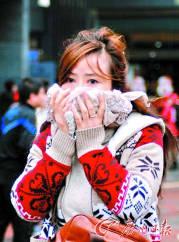 昨日,廣州街頭的行人為抵抗嚴(yán)寒“武裝到了牙齒”。。_知鋒、記者曹景榮攝)