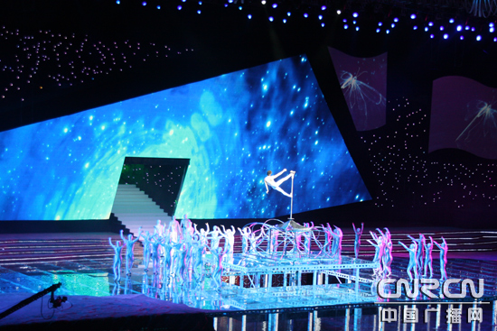 5月9日晚,第九屆中國藝術節(jié)開幕晚會“中國盛典”在廣州市體育館進行了首次帶妝聯(lián)排。圖為彩排現(xiàn)場。(中廣網(wǎng)記者時晨 攝)
