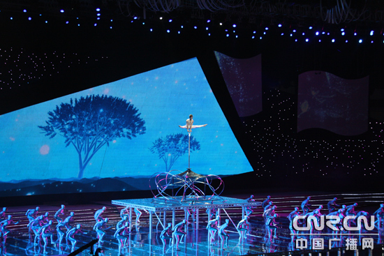 5月9日晚,第九屆中國(guó)藝術(shù)節(jié)開幕晚會(huì)“中國(guó)盛典”在廣州市體育館進(jìn)行了首次帶妝聯(lián)排。圖為彩排現(xiàn)場(chǎng)。(中廣網(wǎng)記者時(shí)晨 攝)