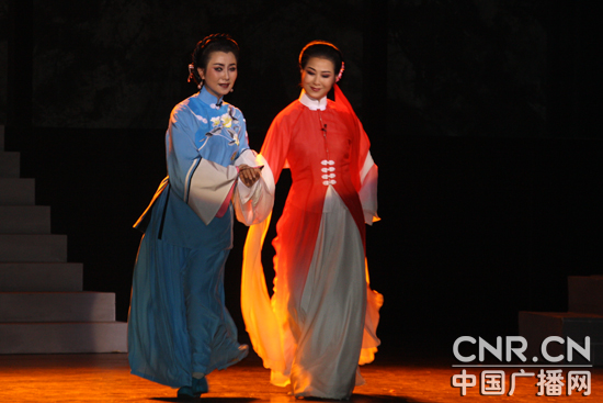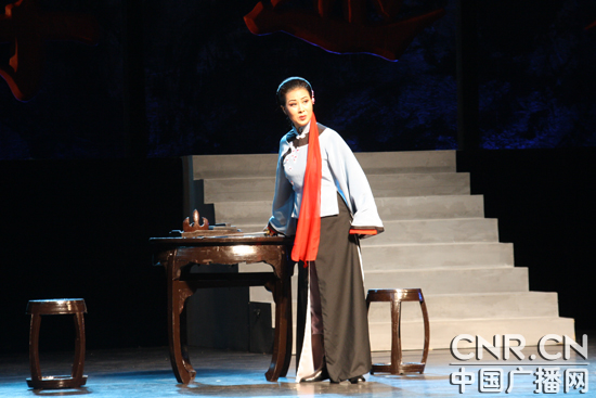 圖為黃梅戲《風(fēng)雨麗人行》的演出現(xiàn)場。(中廣網(wǎng)記者時晨 攝)
