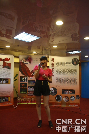 圖為新聞發(fā)布會上,《解放》的主要演員現(xiàn)場為記者演唱山西民歌。(中廣網(wǎng)記者時晨 攝)