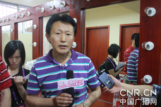 圖為西藏自治區(qū)話劇團(tuán)副團(tuán)長洛丹回答本網(wǎng)記者提問。(中廣網(wǎng)記者時(shí)晨 攝)