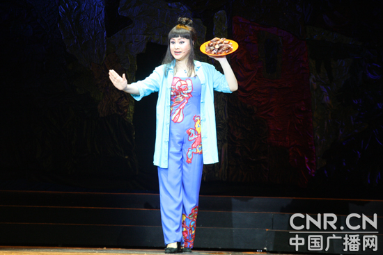 圖為現(xiàn)代京劇《生活秀》演出現(xiàn)場。(中廣網(wǎng)記者時晨 攝)