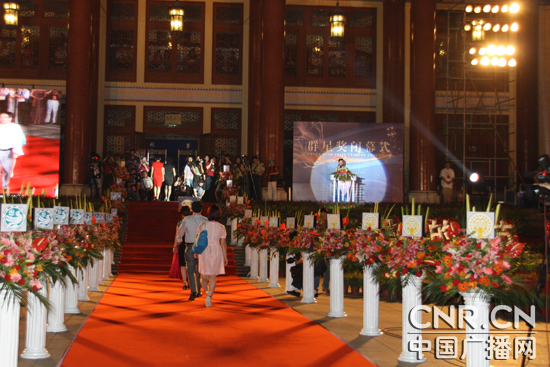 圖為“群星獎”頒獎晚會舉行之前舉行的場外儀式,35個單位的代表依次走過“星光大道”進入中山紀(jì)念堂。(中廣網(wǎng)記者時晨 攝)