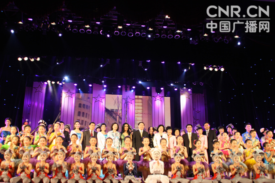 圖為“群星獎”頒獎晚會上,文化部和廣東省、廣州市的領(lǐng)導(dǎo)同獲獎代表和演員合影。(中廣網(wǎng)記者時晨 攝)
