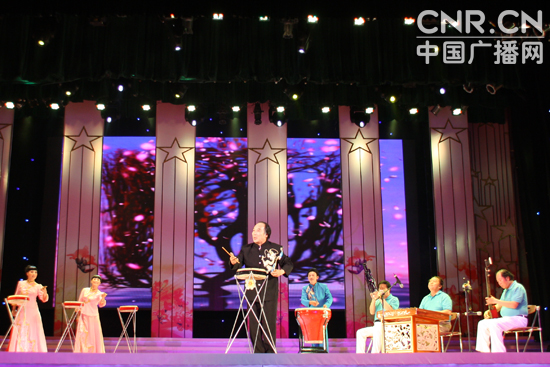 圖為“群星獎”頒獎晚會上,山西省太原大千文化傳媒有限公司表演的京東大鼓《鼓曲神韻》。(中廣網(wǎng)記者時(shí)晨 攝)